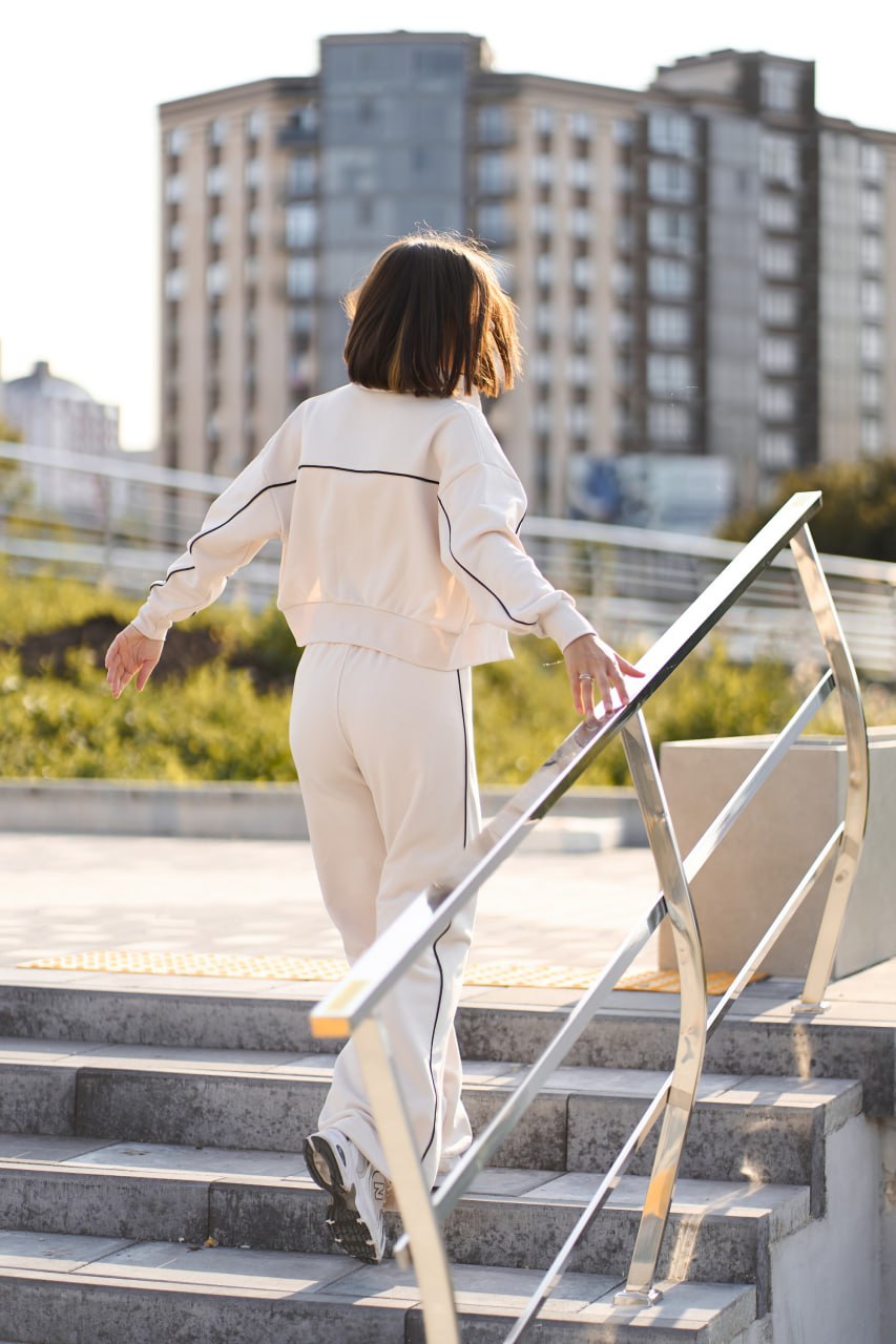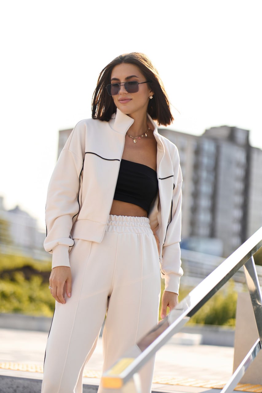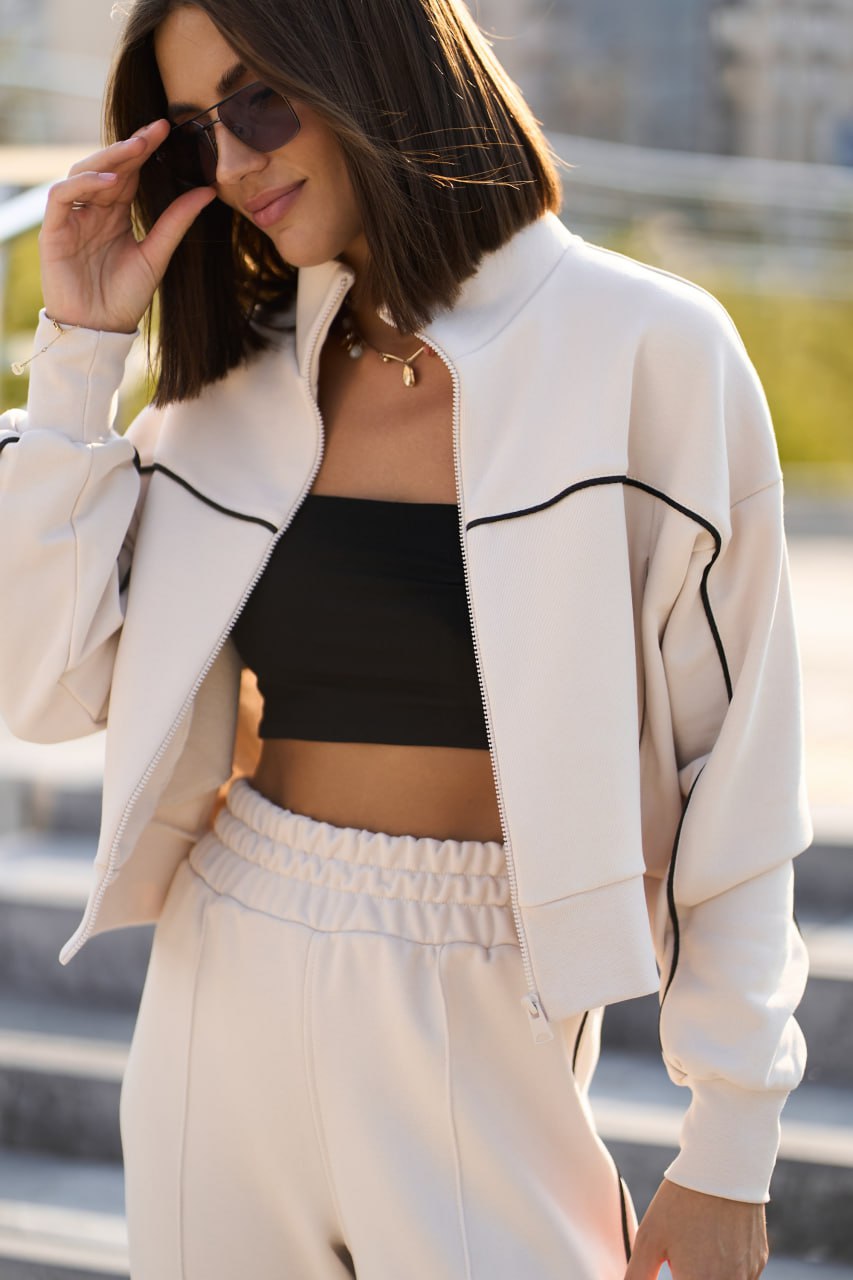 Теплий жіночий костюм з кантом айворі