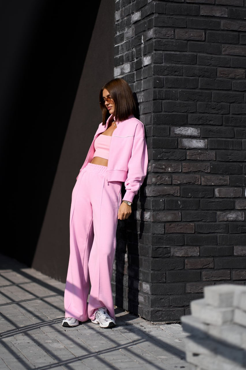 Костюм жіночий з кантом рожевий