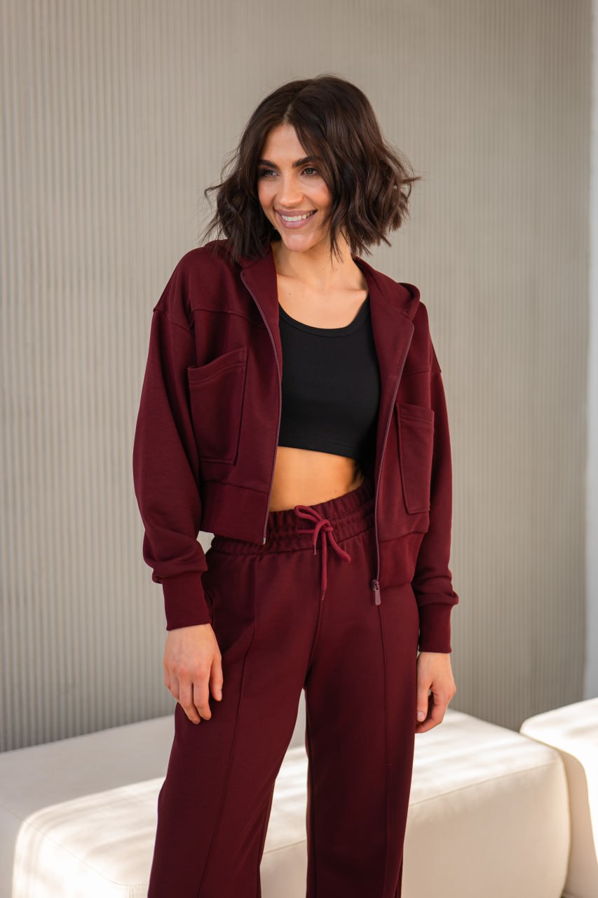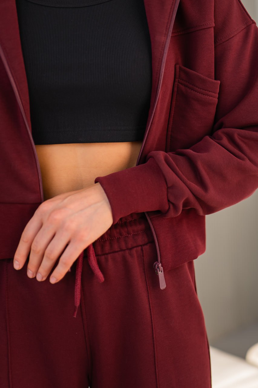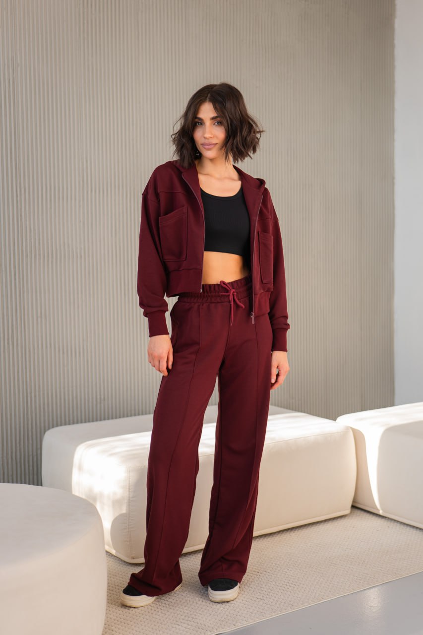 Костюм жіночий зіп-палаццо бургунді