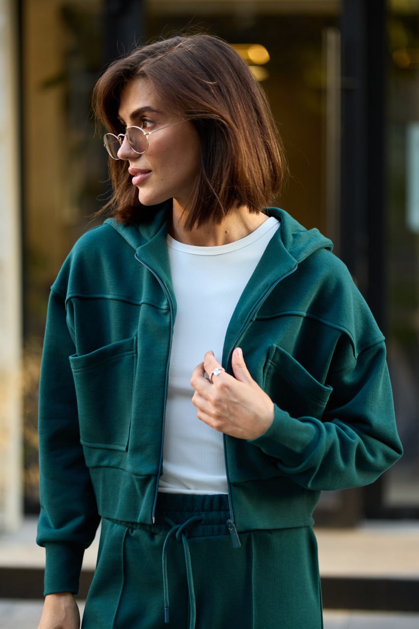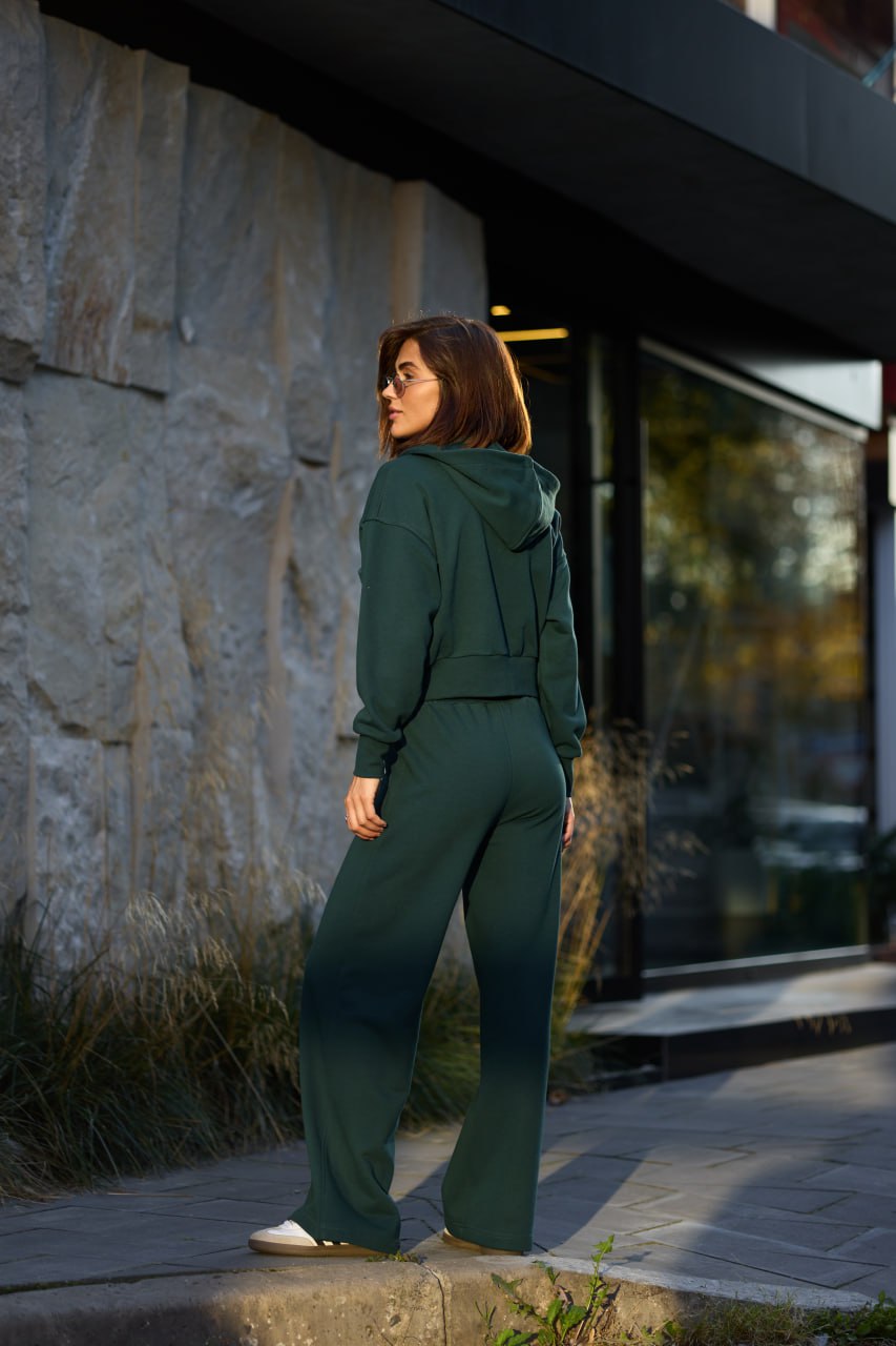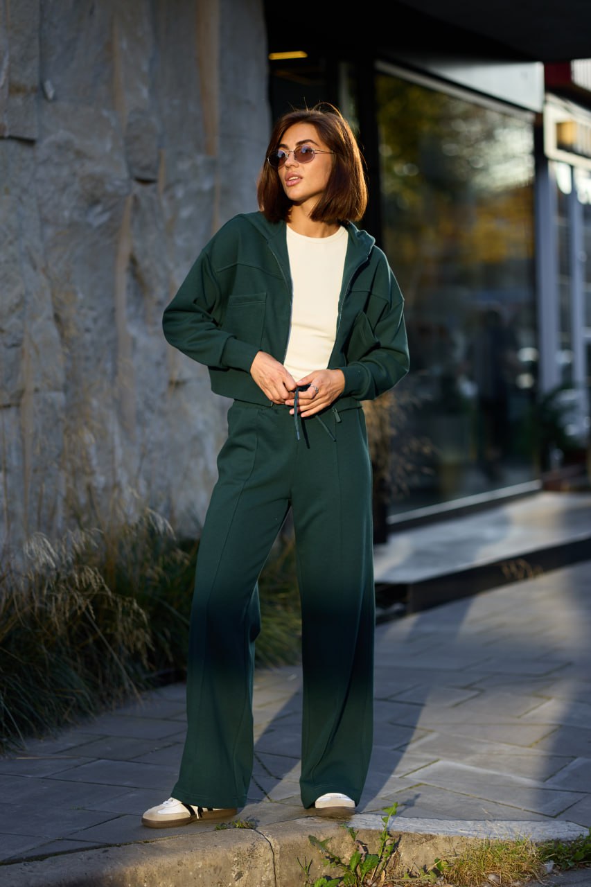 Костюм жіночий зіп-палаццо темно-зелений