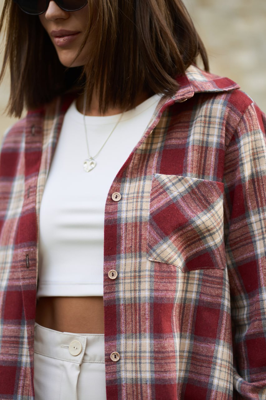 Сорочка виконана з утепленої тканини, на грудях одна кишеня, манжети та планка на матових гудзиках, відкладний комір, плече опущене