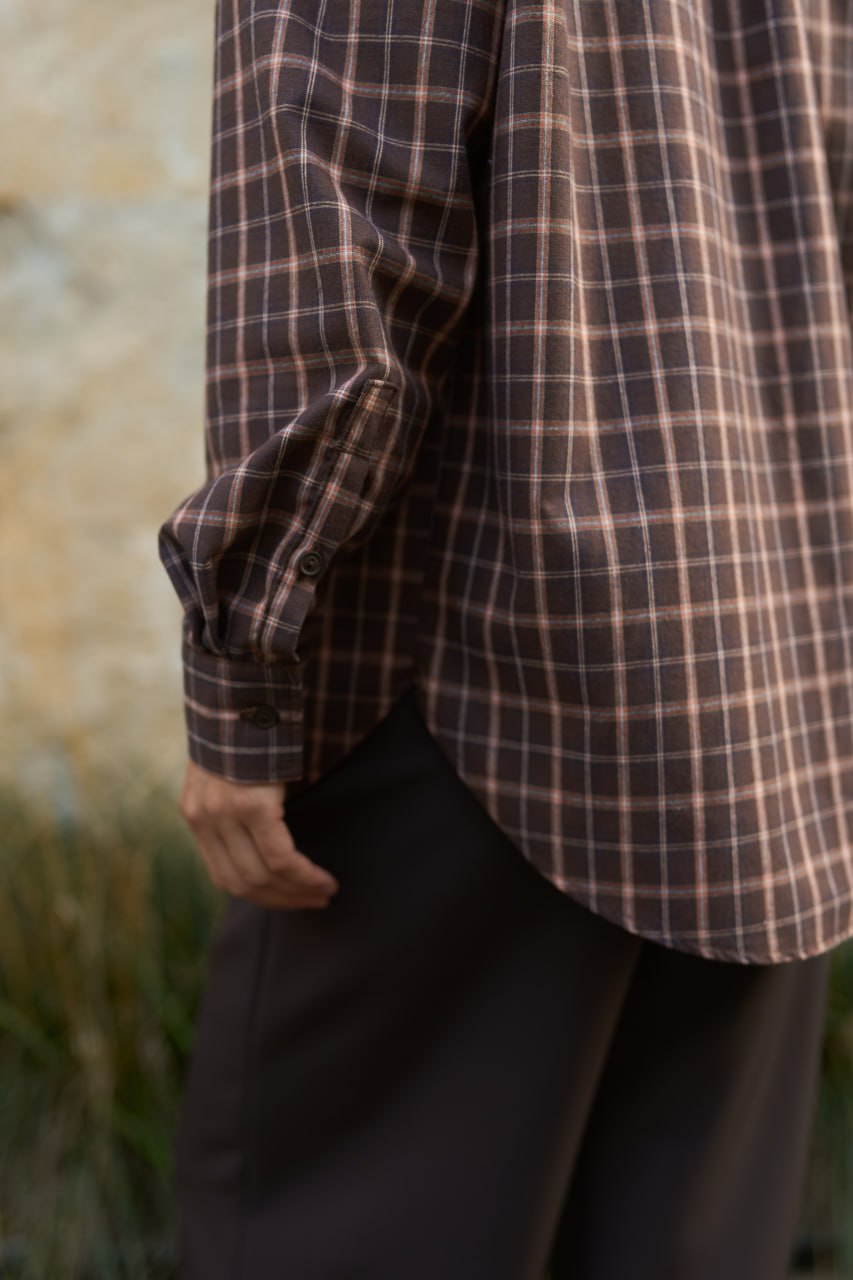 Сорочка виконана з утепленої тканини, на грудях одна кишеня, манжети та планка на матових гудзиках, відкладний комір, плече опущене