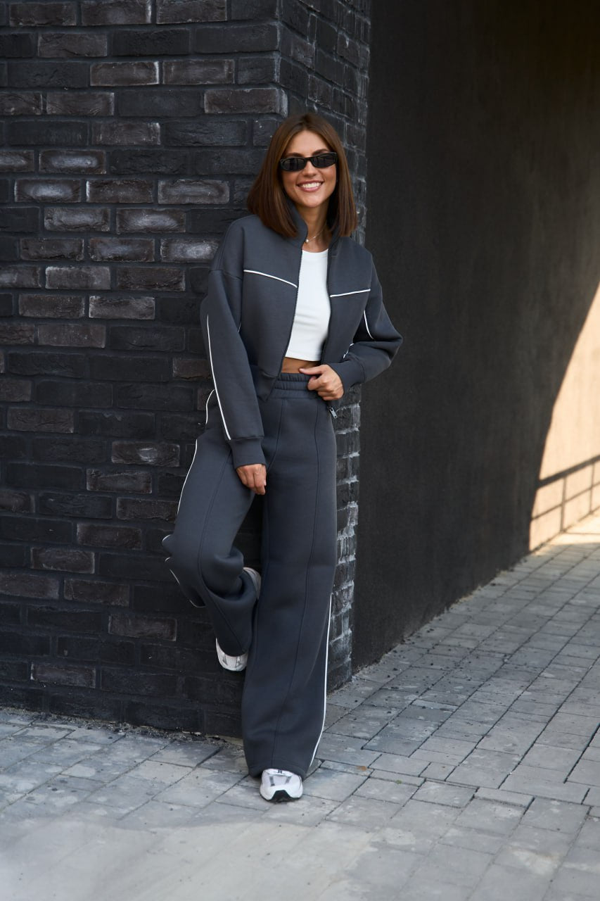 Палаццо прямі на резинці в талії, на штанині пряма строчка та чорний кант