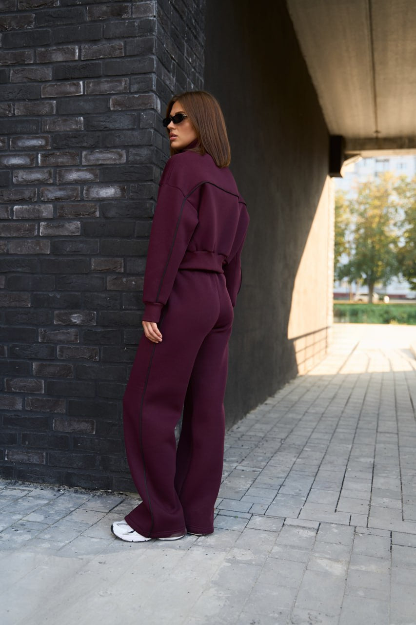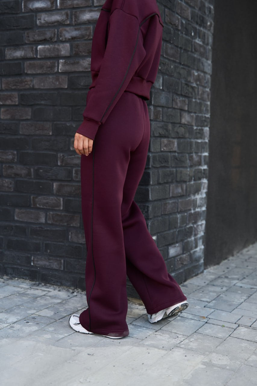 Палаццо прямі на резинці в талії, на штанині пряма строчка та чорний кант