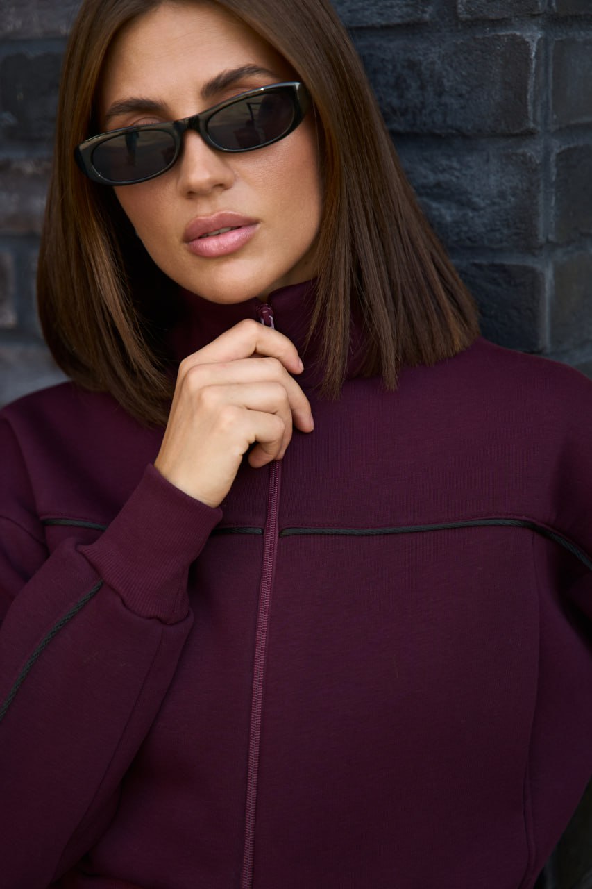 Худі на блискавці стойка вільного крою з кантом, еластичні манжети на рукавах, по низу також рібана